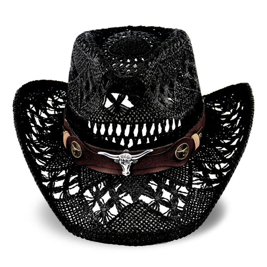 Rock Guitar | Special Men's & Women's Cowboy Hat Straw Cowgirl Hat | Black